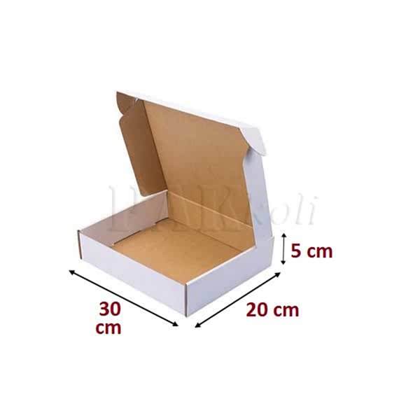 Lahmacun kutusu, börek kutusu, kebap kutusu, kuru pasta kutusu ve pide kutusu olarak kullanılmakta olan 20x30x5 cm boyutlarındaki beyaz kutular gıda ürünlerinin ambalajlanmasında ve nakliyesinde değerlendirilmektedir. Gıda sektöründe üretilen ürünlerin; kebap, lahmacun, börek, kuru pasta ve pide gibi gıdaların sıcaklığını koruması ve hamurlaşmaması için en çok kullanılan taşıma ve paketleme kutularındandır. 20cmx30cmx5cm boyutlarındaki beyaz kutu, oluklu mukavva çeşidi bakımından E dalga yani mikro dalga levhalar kullanılarak üretilmektedir. Baskılı pide kutusu, baskısız pide kutusu, baskılı börek kutusu, baskısız börek kutusu, baskılı lahmacun kutusu, baskısız lahmacun kutusu, baskılı kebap kutusu ve baskısız kebap kutusu seçenekleri ile istediğiniz baskı şekliyle ve istediğiniz ebat-boyut modelleriyle hizmetinize sunuyoruz. Taşımak istediğiniz eşyalarınız veya paketlemek istediğiniz eşyaları Mağazamıza getirerek ve mevcut kutu ve kolileri deneyerek istediğiniz kutu ve koliyi seçebilirsiniz. Özel olarak daha farklı ebatlarda ve baskılı olarak üretilmesinin istendiği özel kutular için PAKkoli’ye başvurarak bilgi alabilirsiniz. PAKkoli olarak acil kutu ihtiyaçlarınıza hemen hazır kutu arşivimizde bulunan dayanıklı ve ucuz kutu ve ucuz koliler ile cevap verebiliyoruz. Ankara’daki yerleşik mağazamız ile her türlü kutu ve koli çeşitlerini müşterilerimizin tercihine sunuyoruz. Ankara’daki müşterilerimizin acil kutu ve acil koli taleplerinde, kutuları saatler içinde adreslerine teslim ediyoruz. Her türlü karton kutu ihtiyaçlarınıza en uygun fiyatlı kutu ve en kaliteli koli ürünlerimizle cevap veriyoruz.